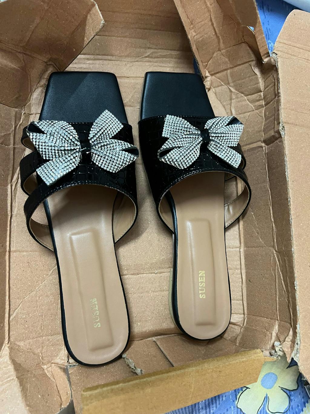 Charming flat shoes featuring a fancy bow on the upper for a stylish flair.